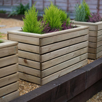These contemporary style Linear planters are the perfect size for a variety of different plants from box balls through to flowering shrubs such as azaleas or roses.