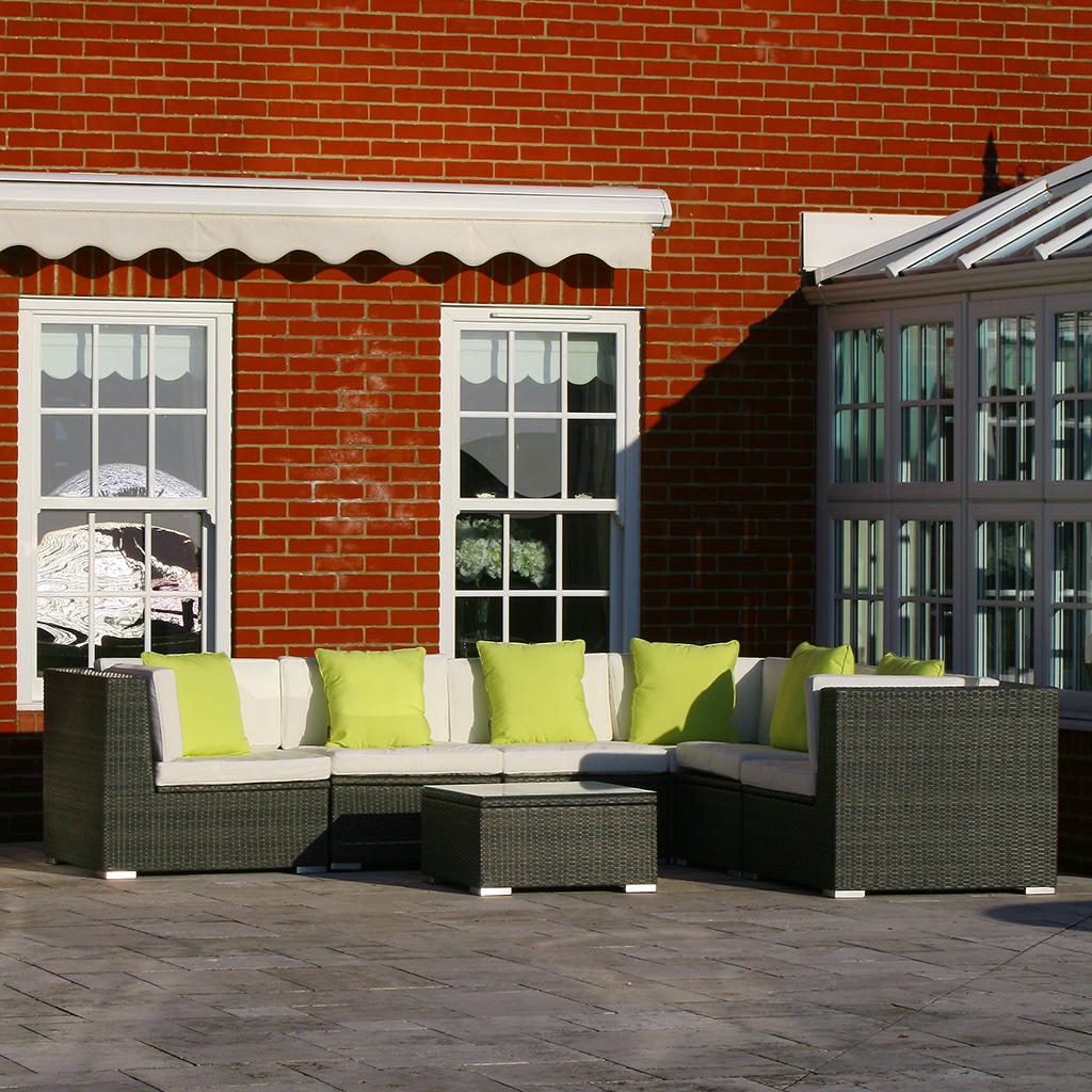 We would advise cushions are brought in during periods of inclement weather and stored underneath the seats of the units. We advise that winter covers are used during the winter months to ensure full protection.