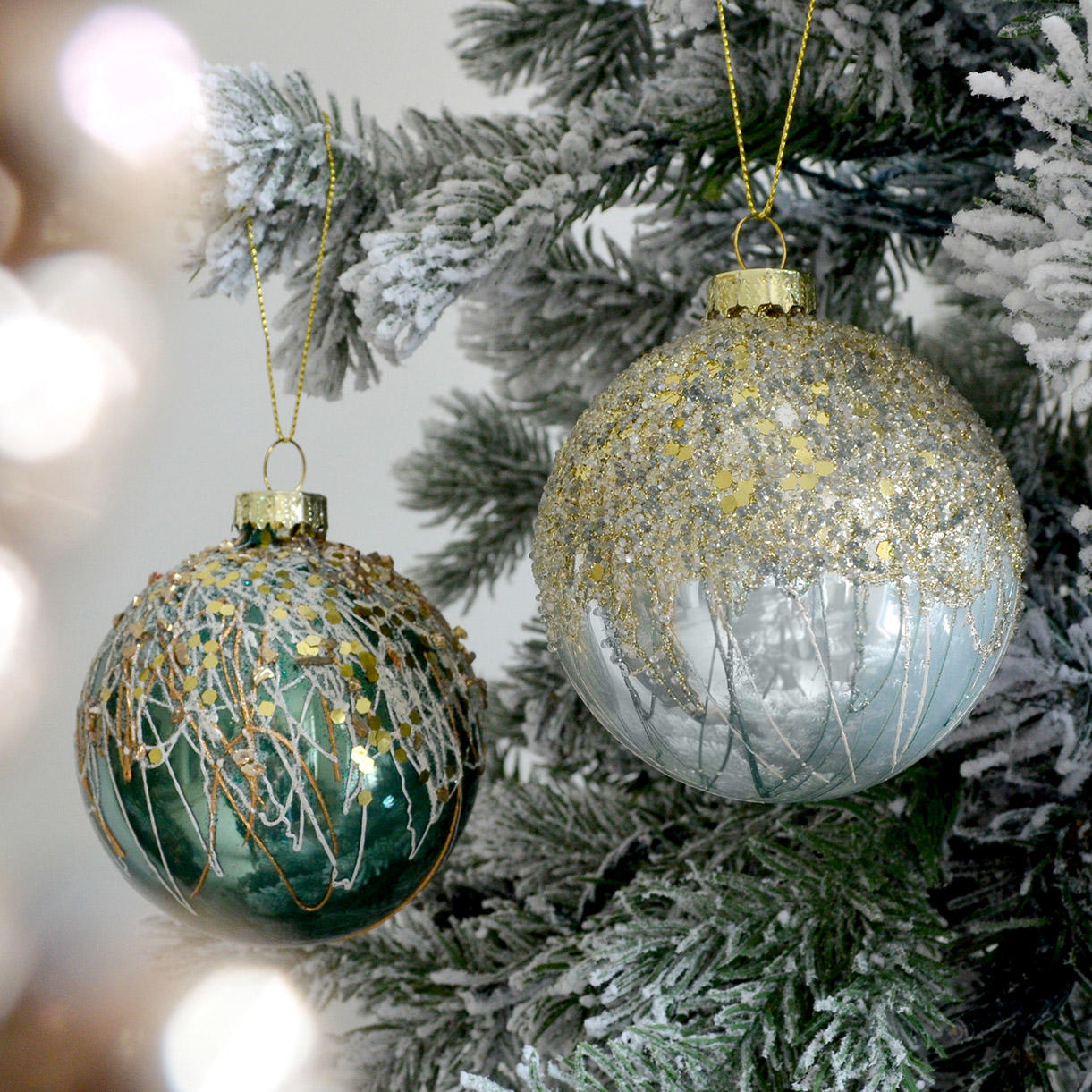 These stunning glass baubles, splattered with gold and silver paint, will stand out on any glamorous Christmas tree.