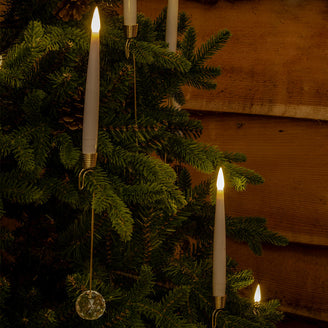 With the effect they are almost floating, these battery LED candles are held on place on your tree by an ingenious but very attractive crystal counterbalance weight.