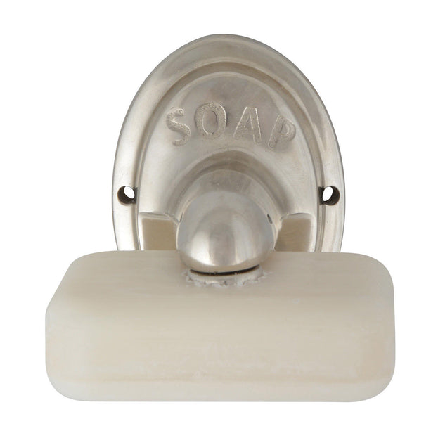 Attach the holder to the wall and simply press the chrome magnet into your bar of soap, the soap will suspend itself from under the holder.