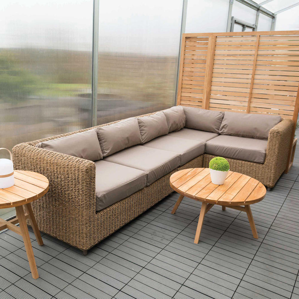 Woven over an aluminium frame for durability, the textured Water Hyacinth outdoor weave is suitable to be left outside in all weathers.