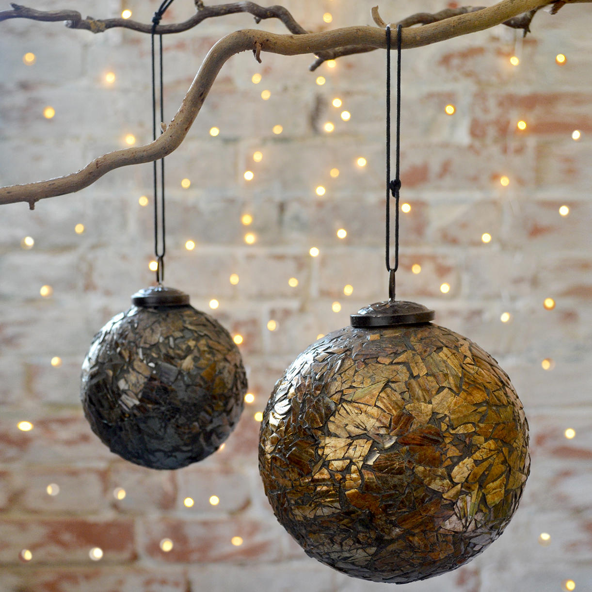 Made from reflective mosaic pieces each bauble shimmers as it catches the light, adding more than just the usual Christmas sparkle.