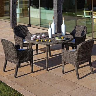 All weather outdoor seat cushions are available for the dining chairs and armchairs, available in a choice of 2 colours:
