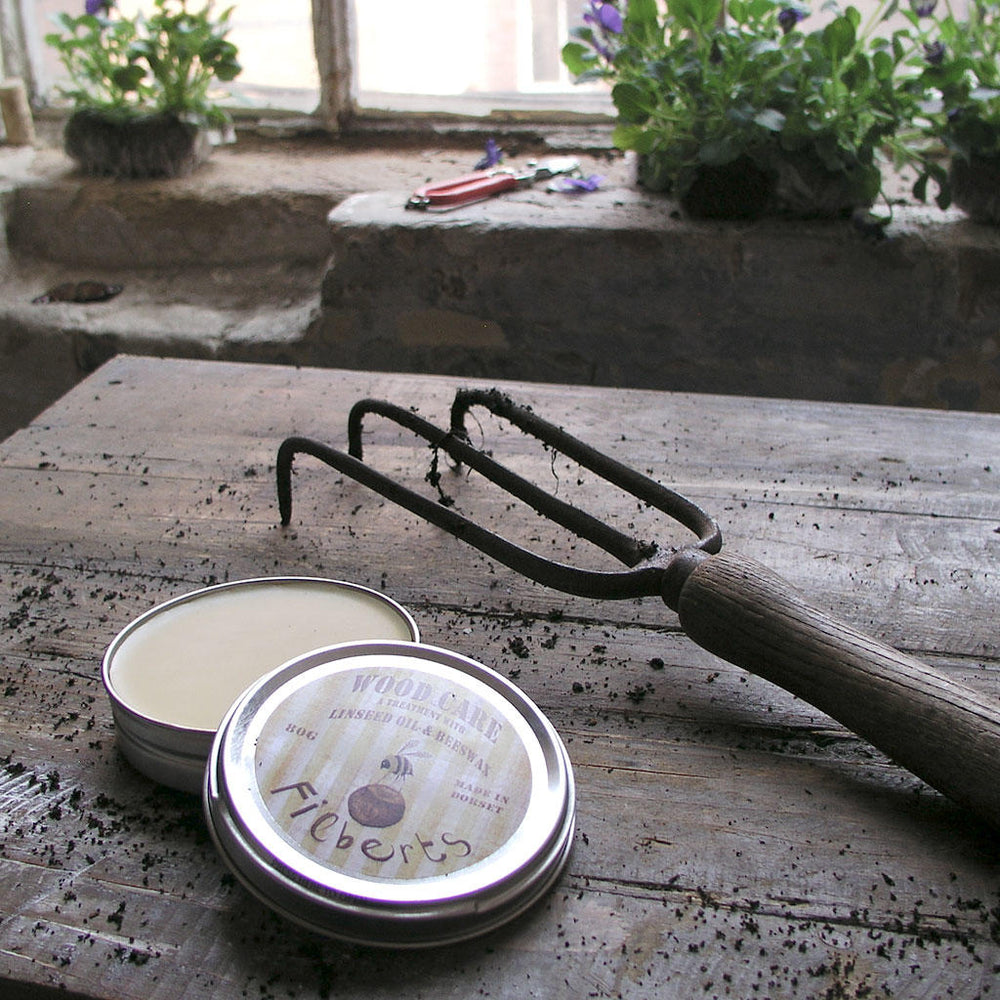 The Natural Beeswax Polish can be used to nourish all manner of things from leather garden boots and leather aprons to making all your old garden tool handles like new again.