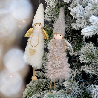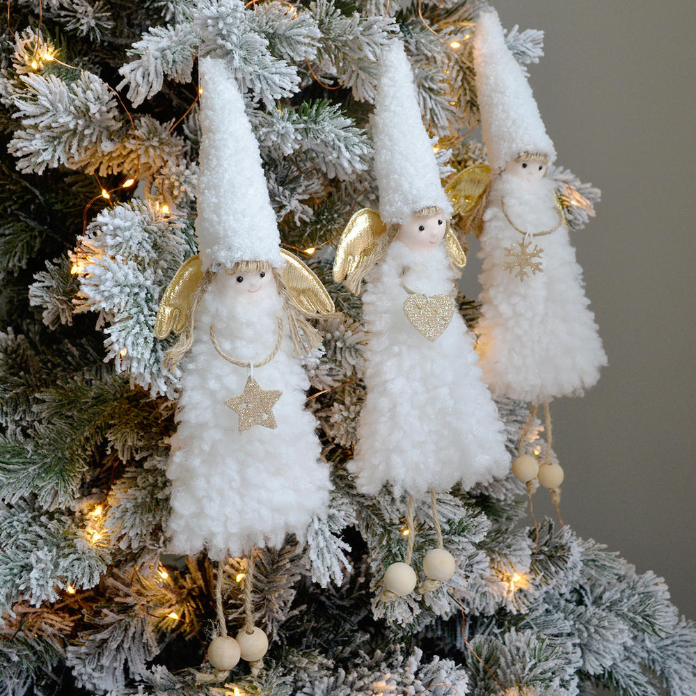 So cute and so soft, these fluffy fabric angels will hang proudly on your tree.