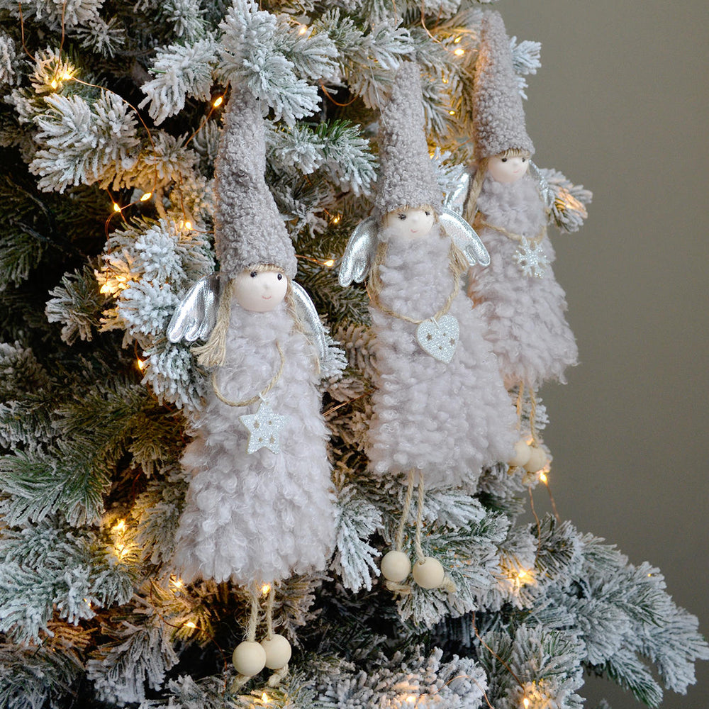 With teddy fabric hats and curly wool dresses, the angels are available in sets of 3, in either winter white or a lovely mink grey.