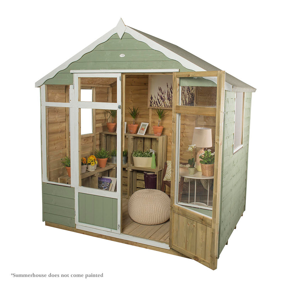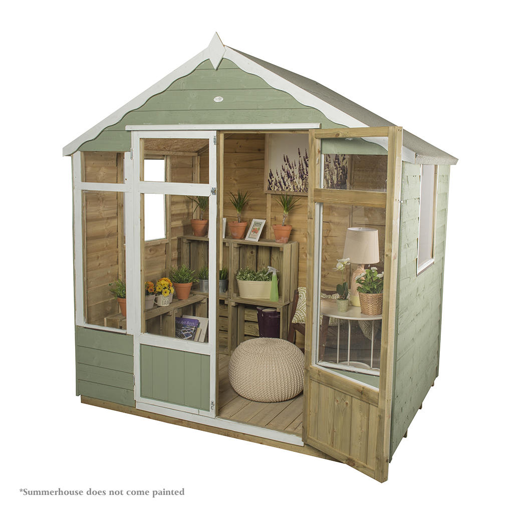 The summerhouses come in unstained wood but can be treated with coloured wood stain if required.