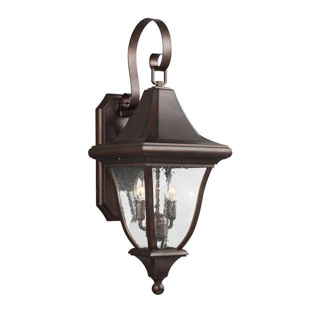 Inspired by the architecture of churches, the Oakmont outdoor collection boasts incredible details, from the steeply pitched roofline and softly curved glass panels to an angular backplate, lovely curved arm extension and classic detailing.