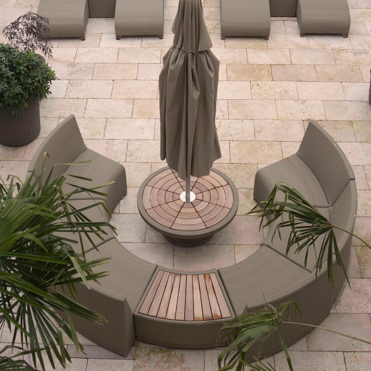 This modular outdoor seating collection with deep and comfortable units and gentle curves.