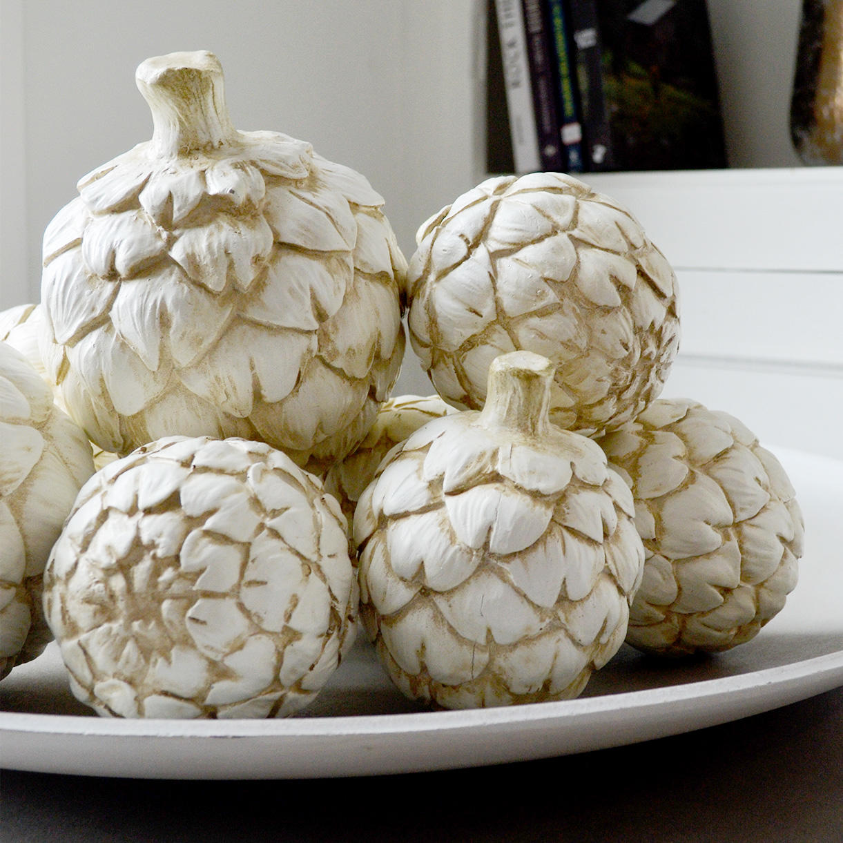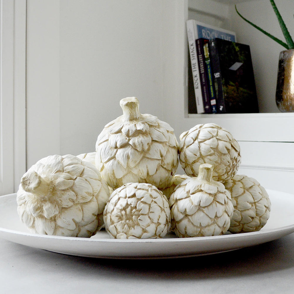 With a cream finish, try a collection of these gorgeous artichokes in a bowl or platter to make a delightful centrepiece for any occasional table in a conservatory or orangery.