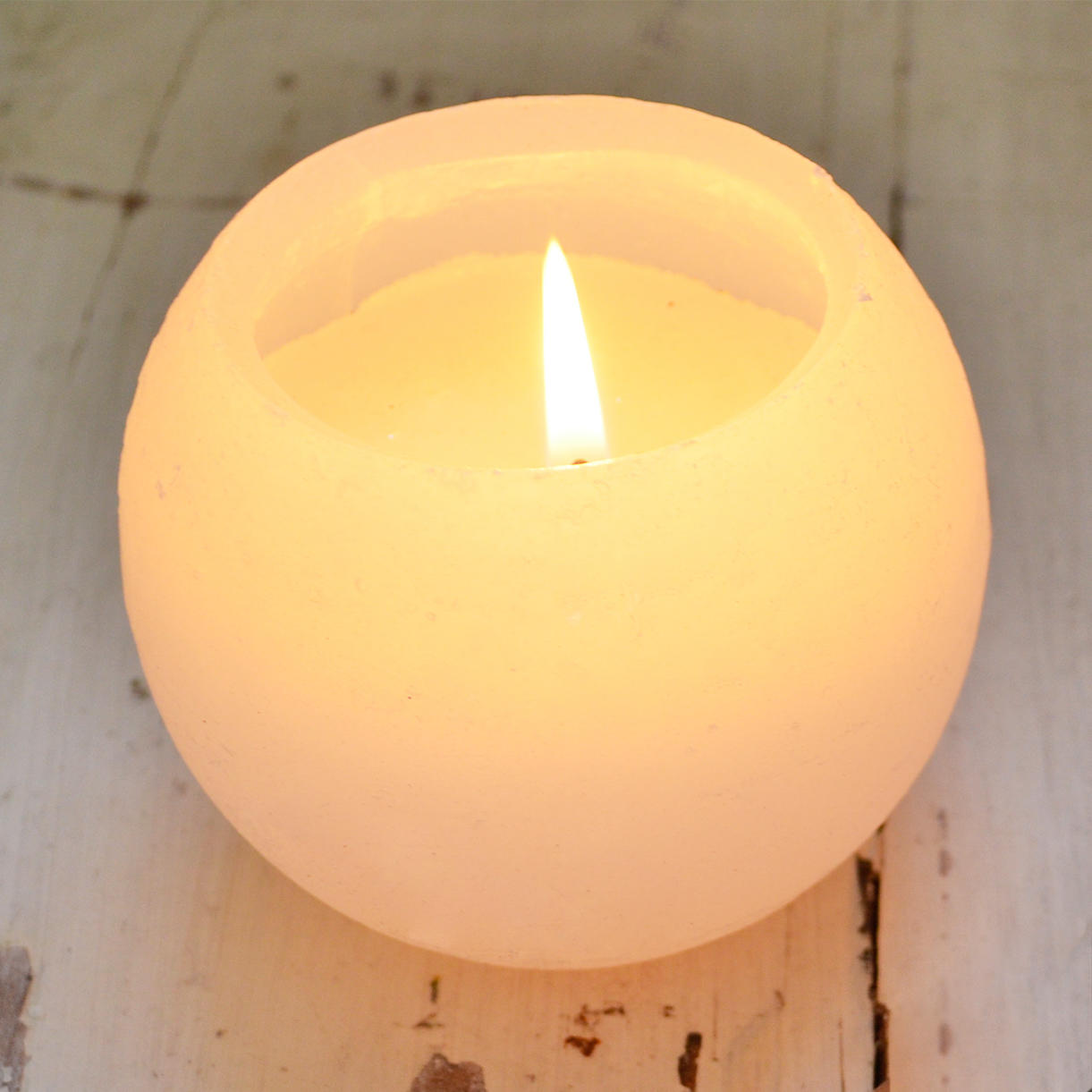 The waxed ball is half filled with wax and has a thick outdoor wick. The protective shell of the candle and the outdoor wick means the candle is robust enough to be lit and used outside, even during winter parties.