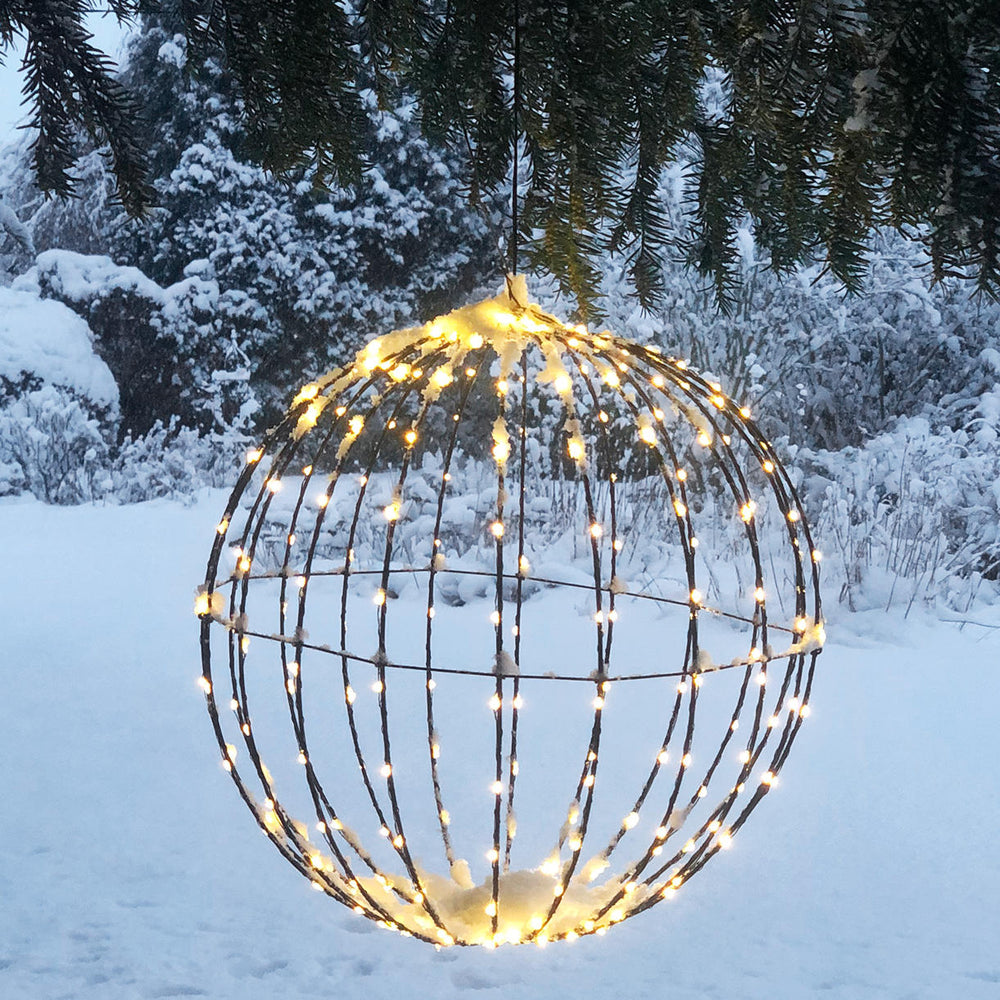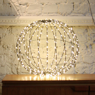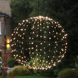 Stunning 50cm large black LED spheres covered with 300 sparkly warm white LED lights which can be used either indoors or outdoors.