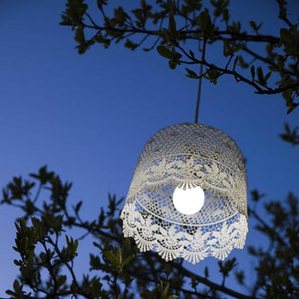 The lightweight lace shades come complete with an LED bulb and rope cord to suspend the light from.