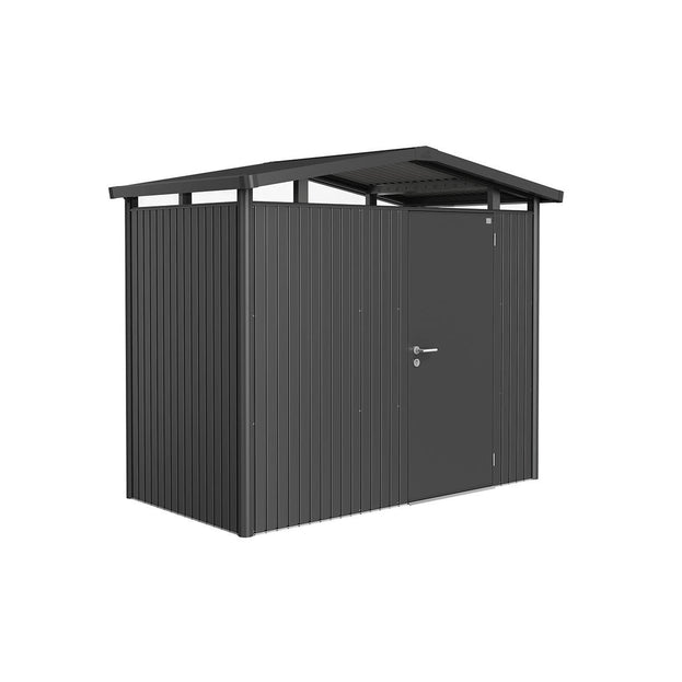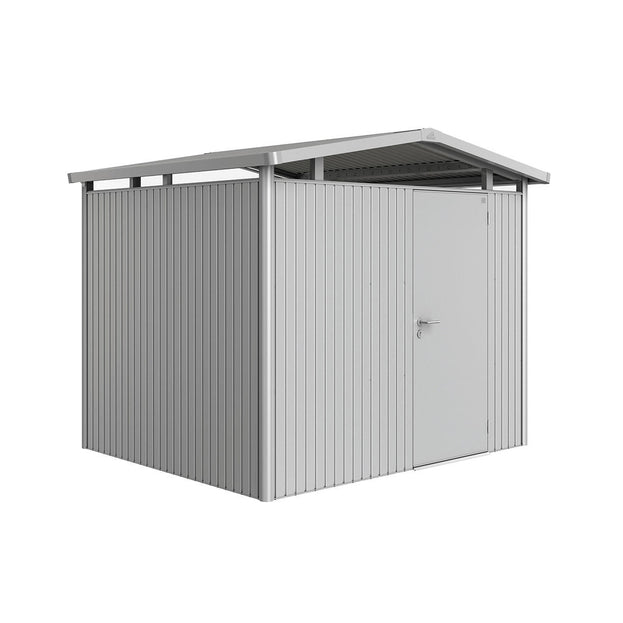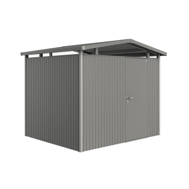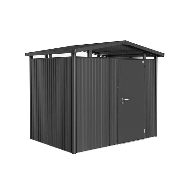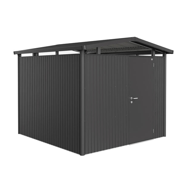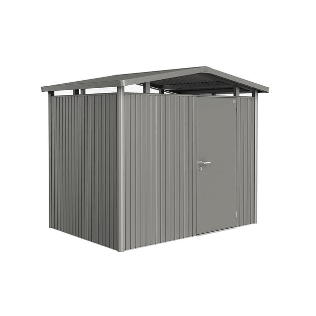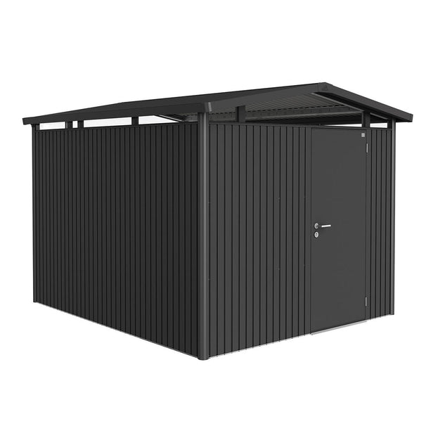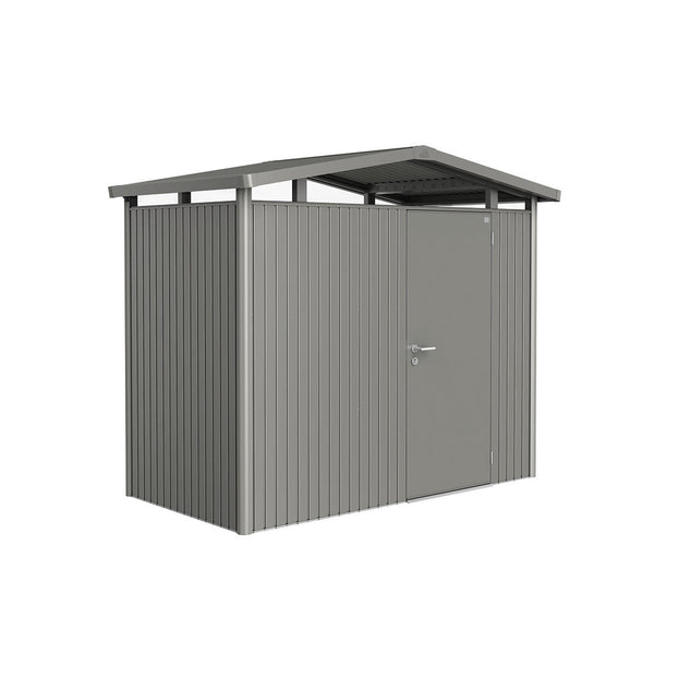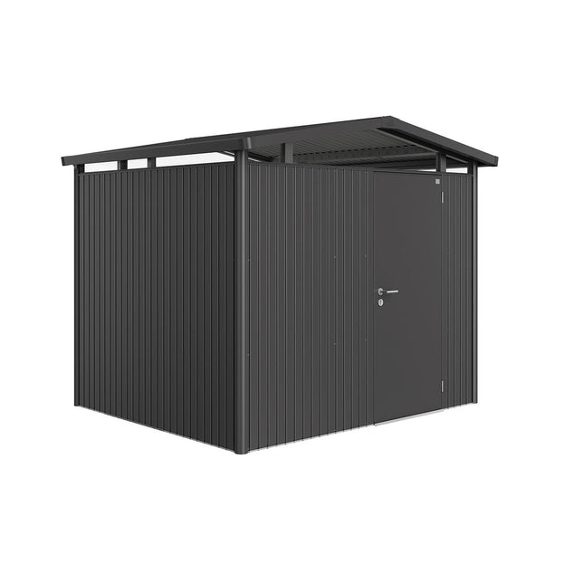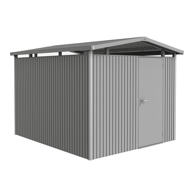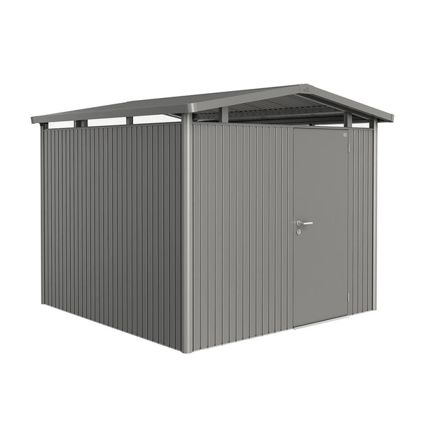 The Biohort Panorama has a much lighter appearance because of its unique skylight windows which not only allows natural light into your shed but also helps your shed blend into its surroundings because of its transparency. As with all Biohort products it is very secure, with a 3-way locking mechanism. Gutters with integrated leaf traps are fitted on either side, with a connection for a hose. The doors are fitted with an advanced gas assisted spring damper for easy operation.