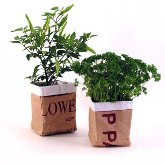 Waxed paper planters are perfect for kitchen herbs or chillis.