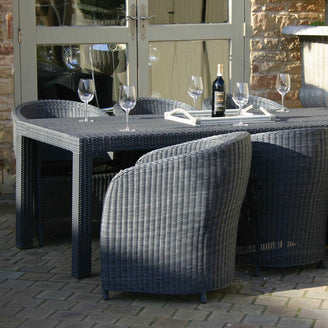 The Partner table sits perfectly with woven chairs - we would recommend the Classic Chair, Caspian Chair or the Savoy Chair