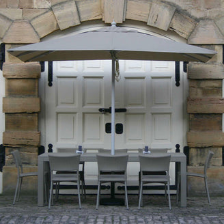 The table top has a honeycomb substructure underneath for extra stability as well as an inbuilt hole for a parasol.