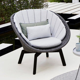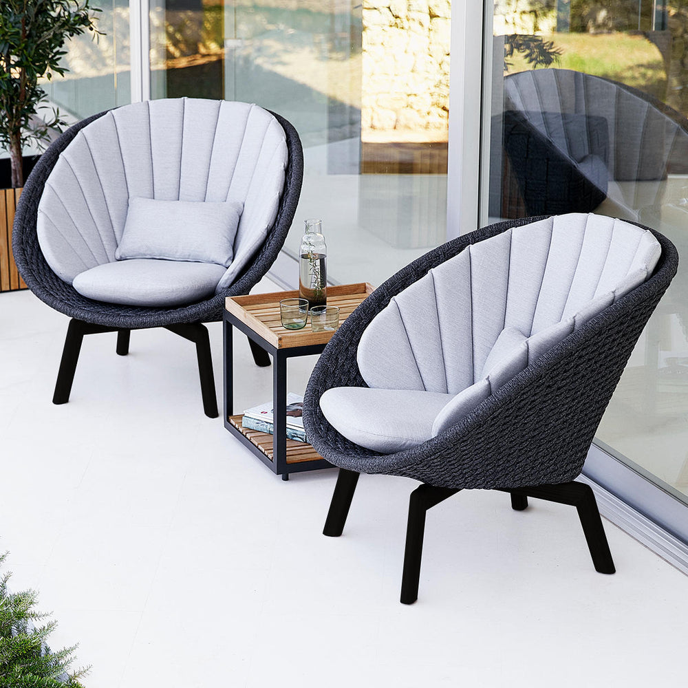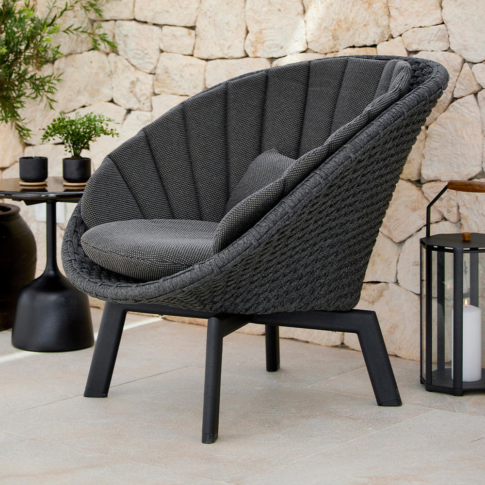 The Peacock Soft Rope outdoor lounge chairs with black aluminum legs and woven bucket seat and back, have been designed in line with all Cane-line furniture to give both high levels of comfort as well as functionality.