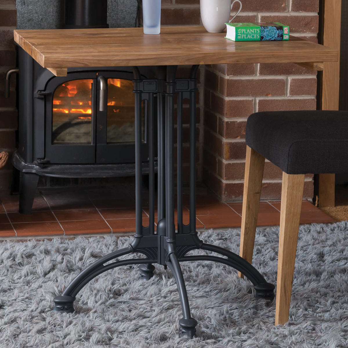 The mix and match Pigalle table bases with a choice of table tops in reclamation teak to create your own bespoke tables.