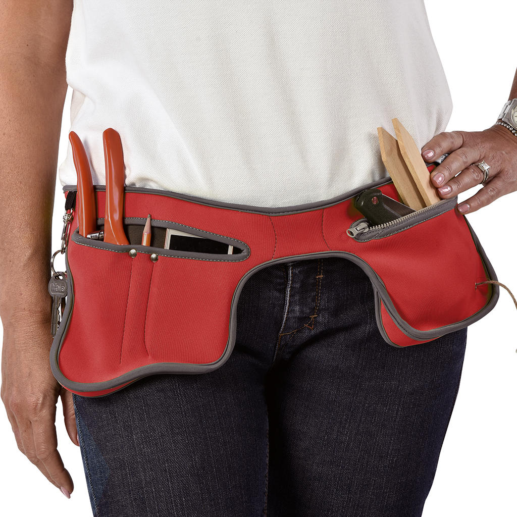 Great way to keep your phone, labels, scissors and other bits and bobs to hand when you are working in the garden.