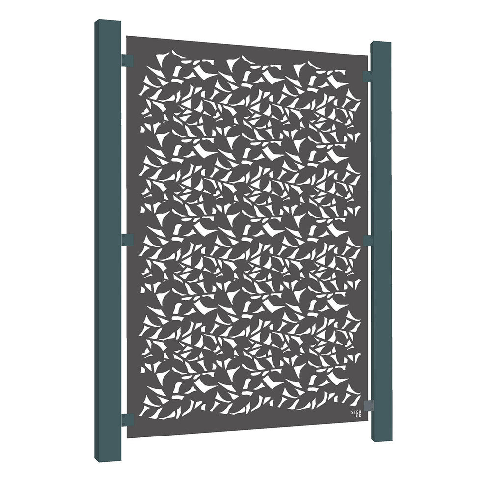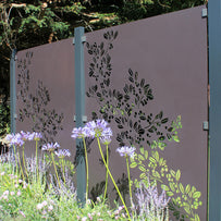 An abstract design inspired by the dappled effect of sunlight through the foliage of a tree canopy. The pattern has 50% opacity, and works particularly well when used against a wall and is back-lit. Perfect for screening and delineating outdoor spaces. Can also be used as a boundary fence.