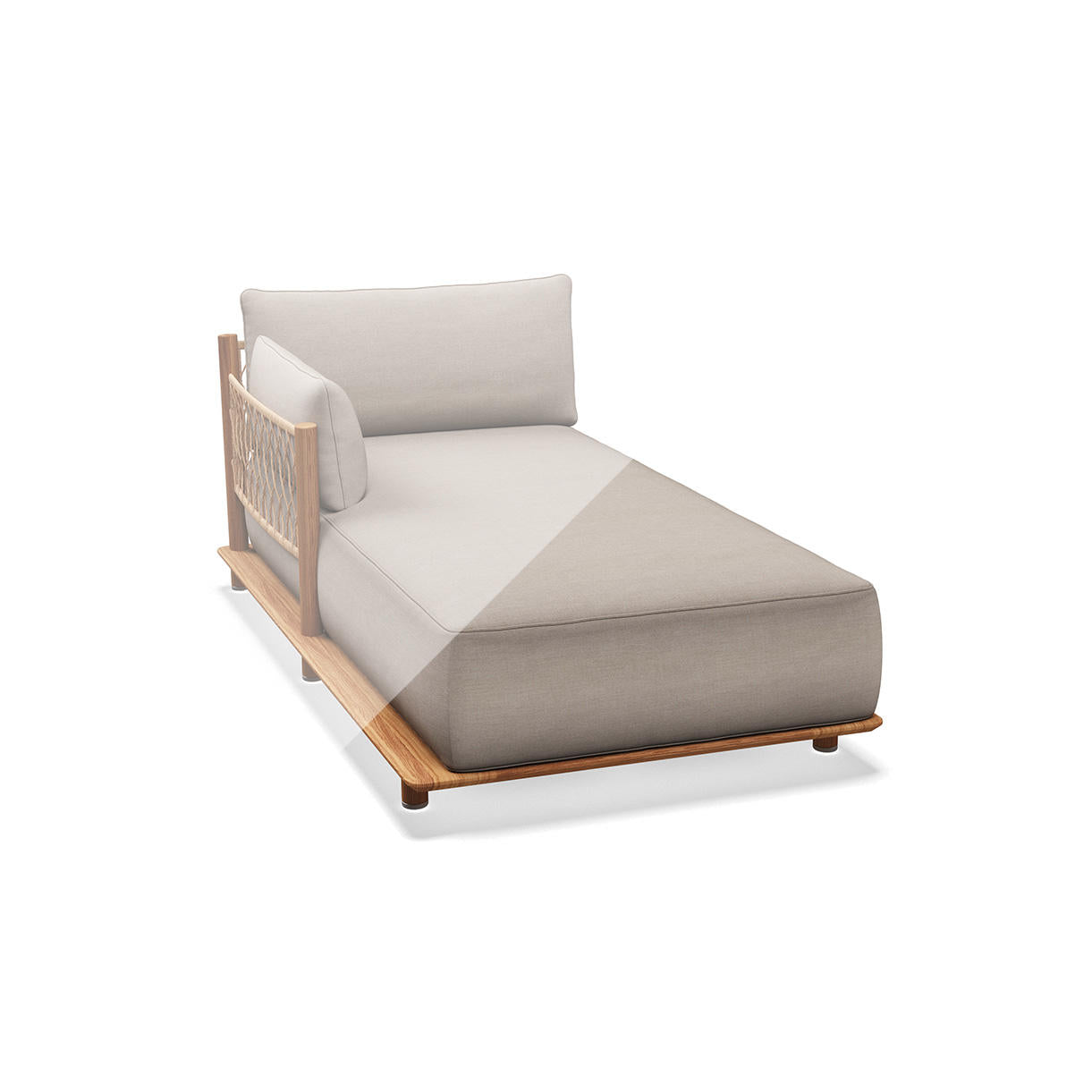 The Protective Cover for the Salina Left Chaise Unit is made of Weathermax material, a heavy duty 100% solution dyed polyester material.