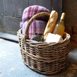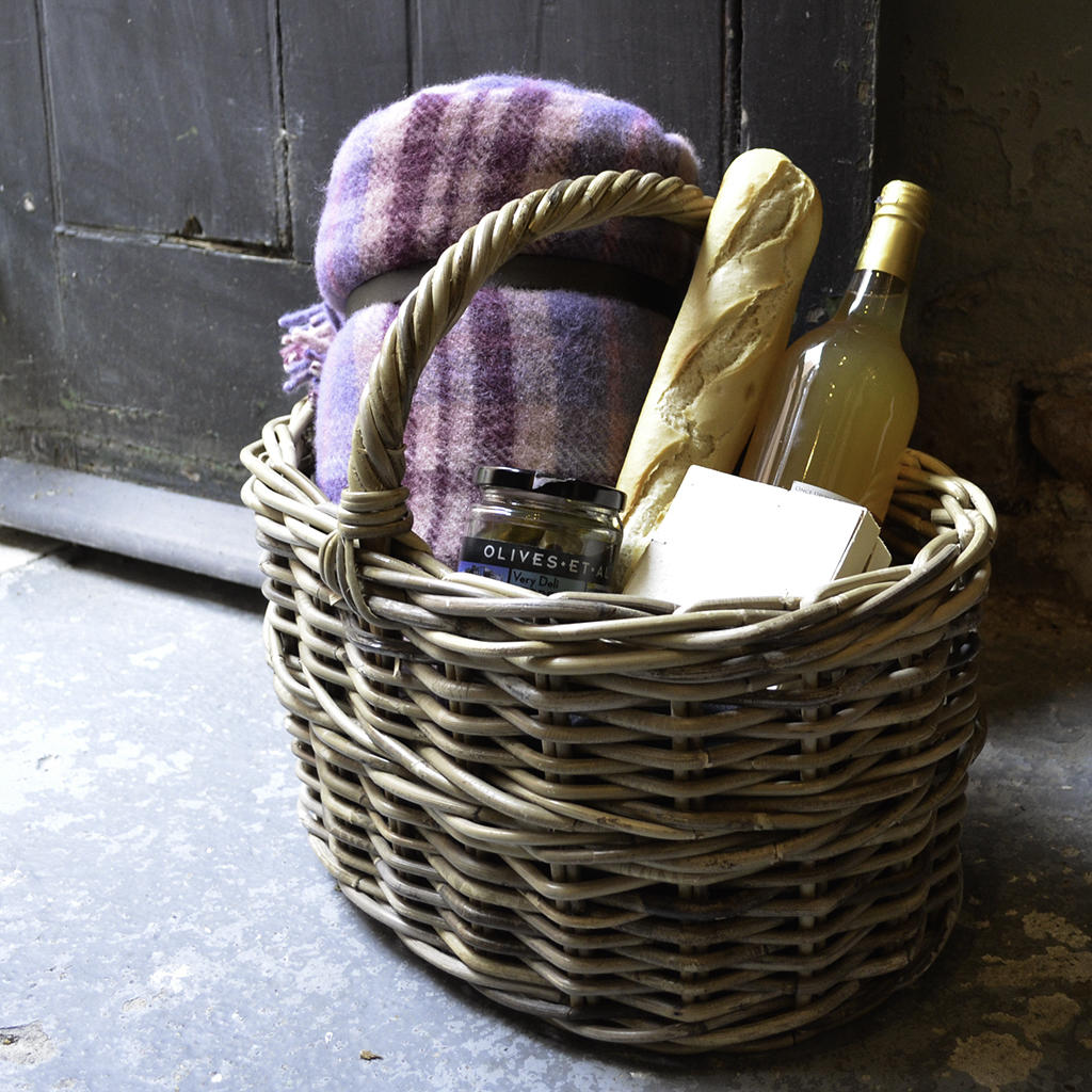 Useful and versatile rattan basket - handy for impromptu picnics, ideal for gathering the harvest in.