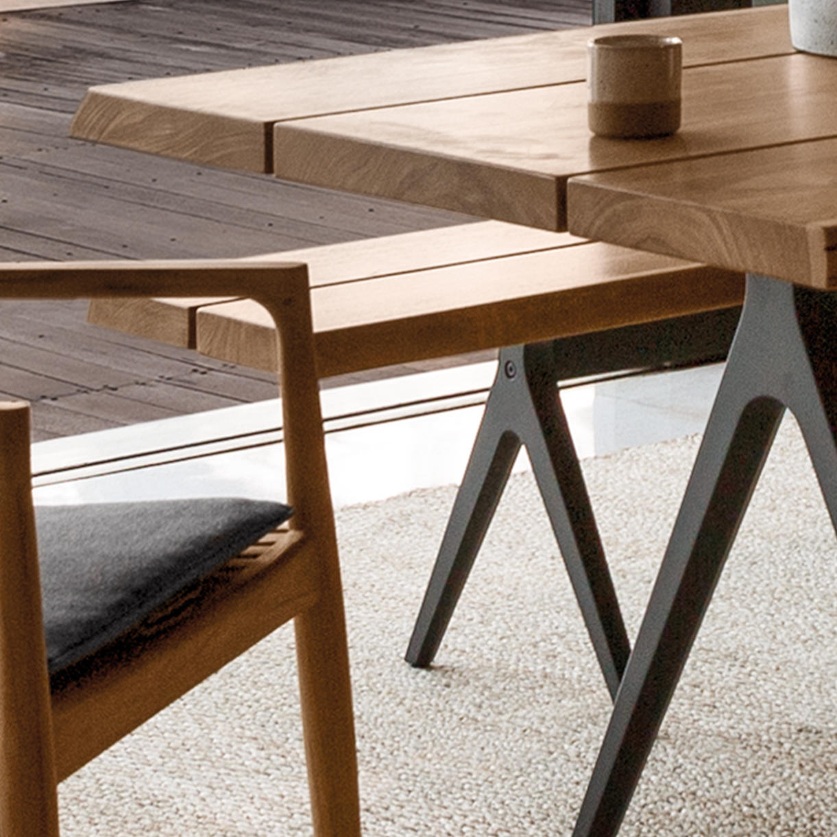 With a twist on the tradition, these large Raw teak benches by Gloster are a contemporary take on the simple refectory style bench.