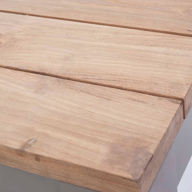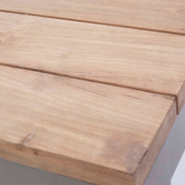 Made from reclaimed teak, this stunning refectory style dining table is simple and practical, with a powder coated aluminium frame.
