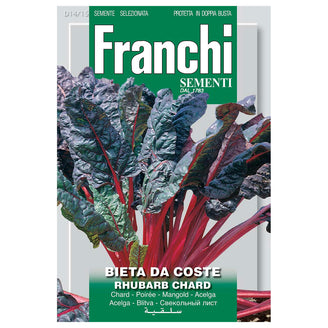 Rhubarb Swiss Chard is super easy to grow and a great vegetable to have in the allotment or veggie plot. This variety has deep red green leaves and large red ribbed stems. You can cook the leaves like spinch by simply stewing and then tossing in butter.