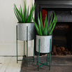 The pair of plant stands consist of a soft wood frame painted in vintage green reminiscent of Monet's garden, with a zinc metal planter.
