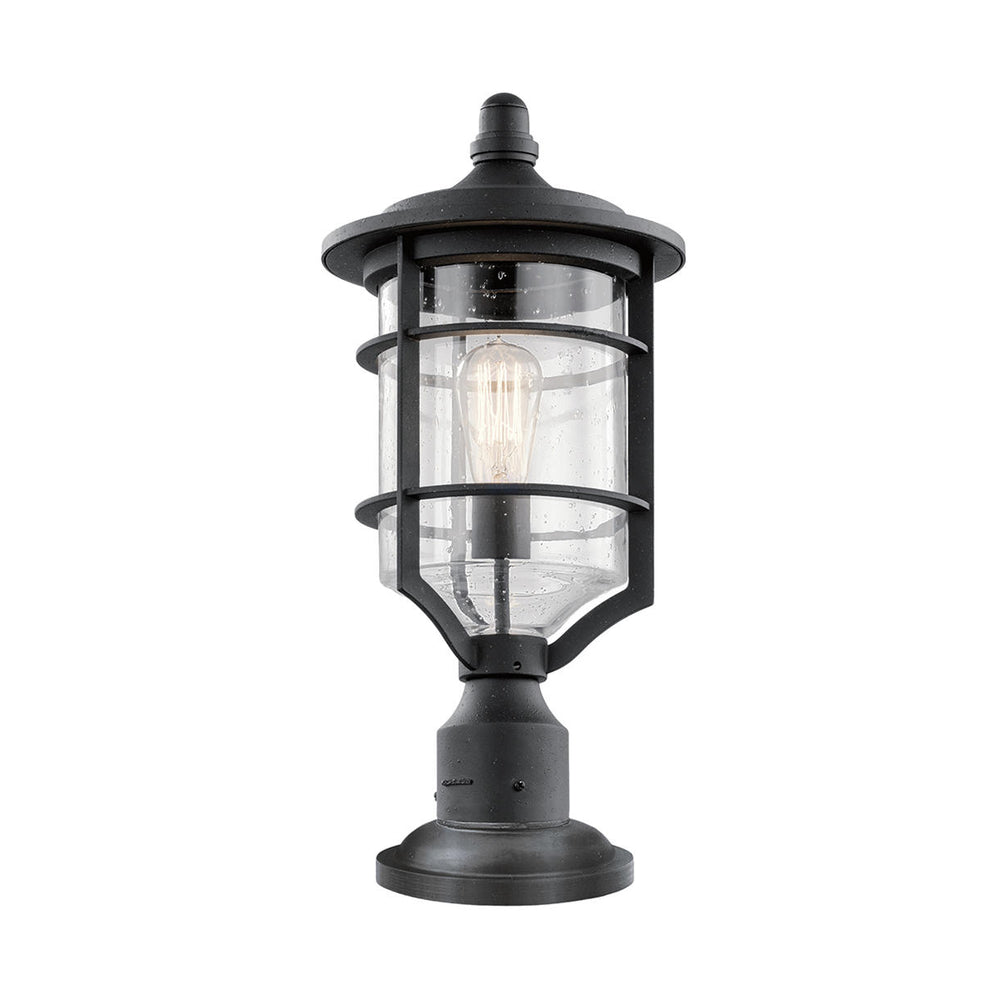 The fitting has a slightly scalloped base and decorative arm and the oversized caged glass features a seeded detailing which adds to its vintage character.