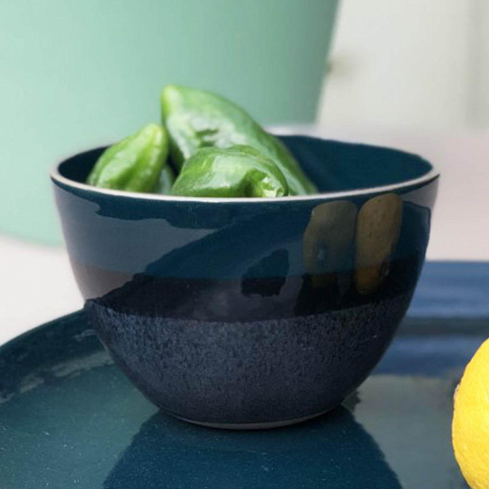 With a rich glaze in varying tones of deep blue, and its shape influenced by natural lines, this beautiful and exquisite collection will enhance any table.