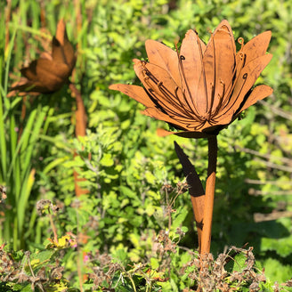 This elegant stylised lily flower stake is a lovely way to create a little extra drama in your beds and borders.