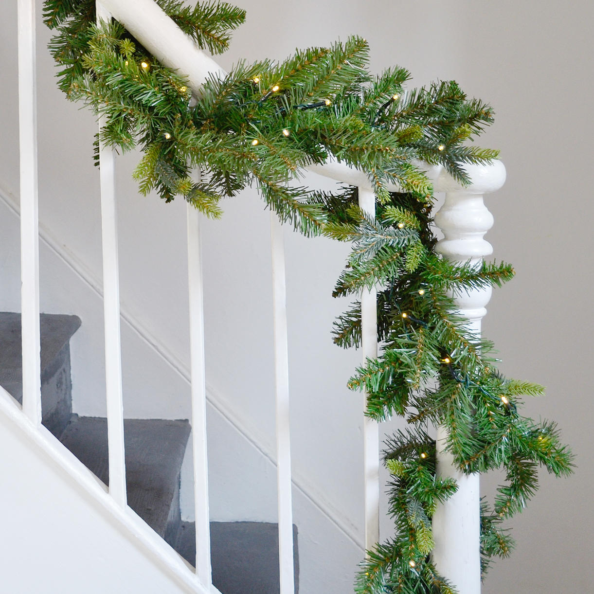 This battery operated faux Christmas garland looks lovely just with its 50 warm white LED lights.