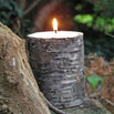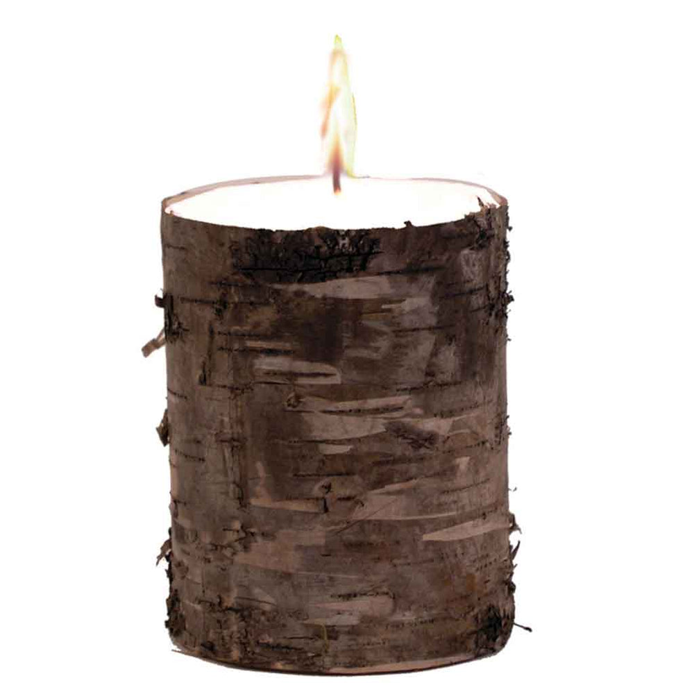 It is wrapped with a foil-lined silver birch wrapper which does not burn when the candle is lit.