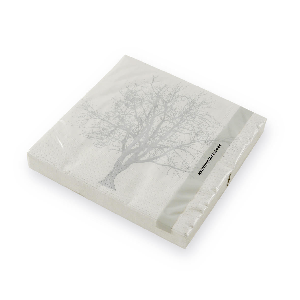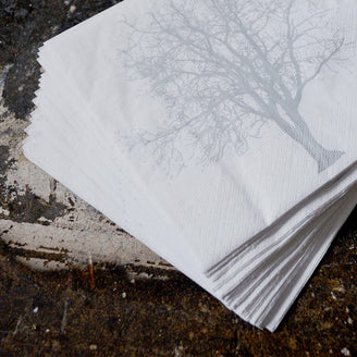 Handy pack of 12 paper napkins, with a pretty silver skeleton tree design.