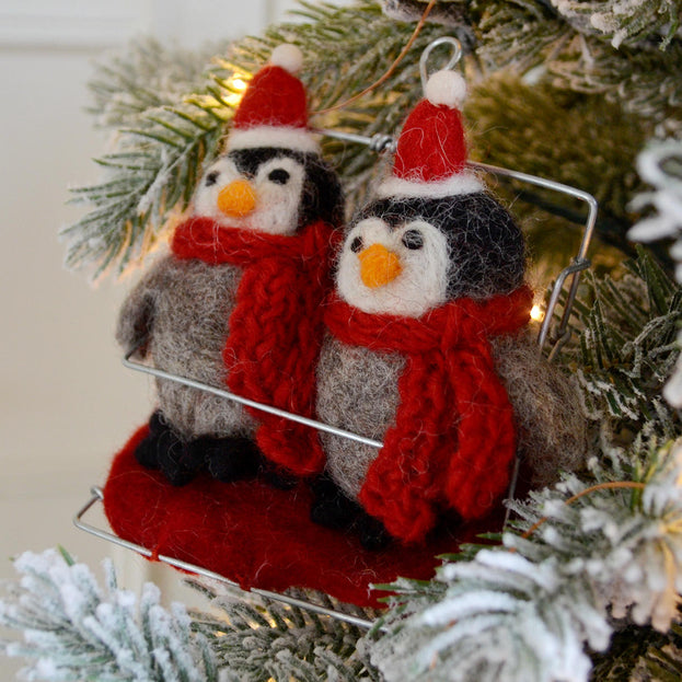 These super cute penguins, sitting on a chair lift, are ready to ascend to the highest point of your Christmas tree.