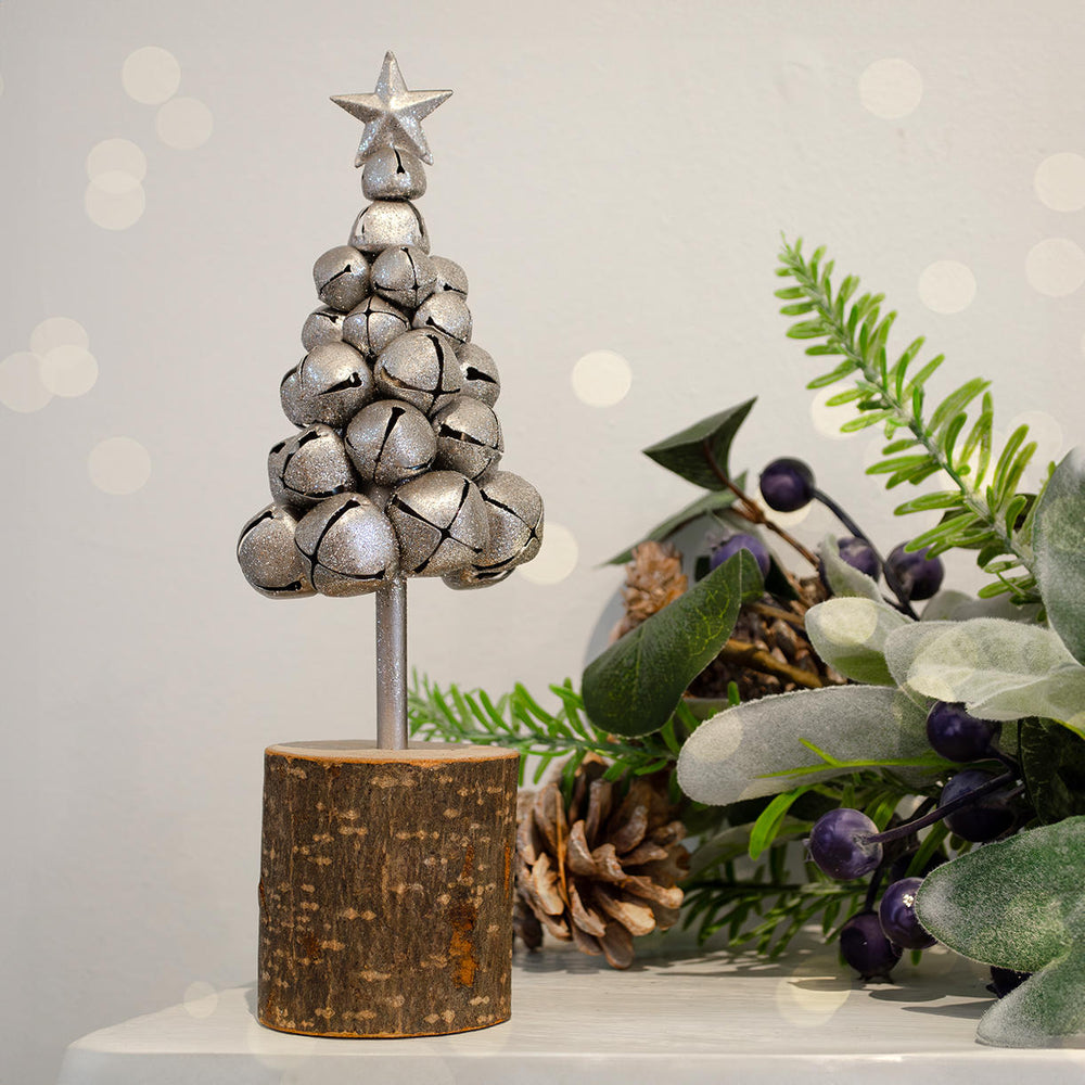 Wonderful and cheery little Christmas sleigh bells adorn this lovely windowsill Christmas tree and will bring a little Scandi style to your home.