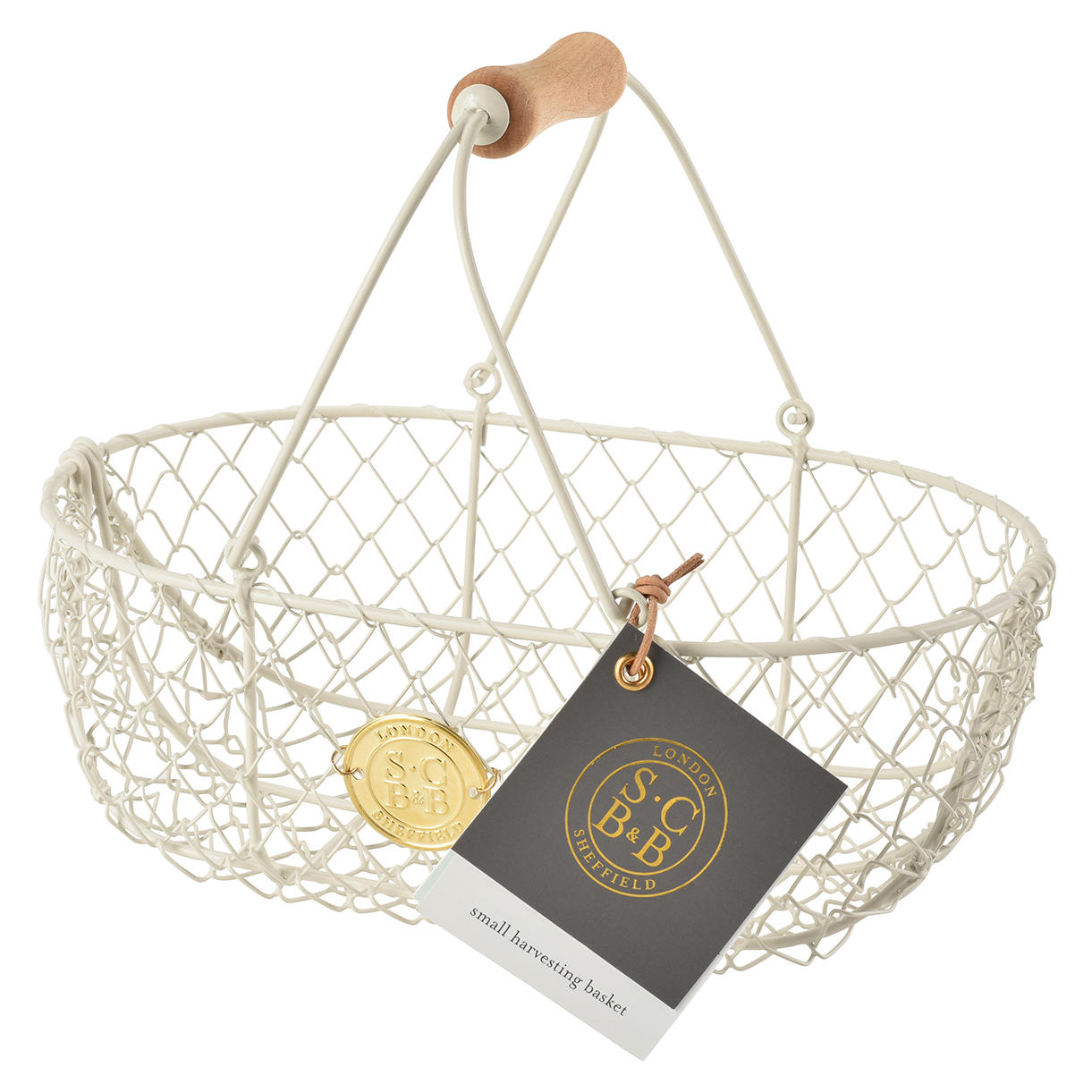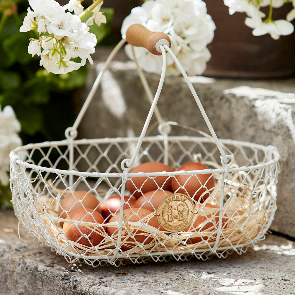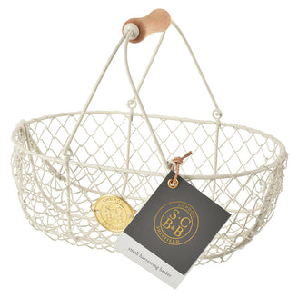 Attractive, handcrafted traditional style harvest basket in a cream powder-coated finish.