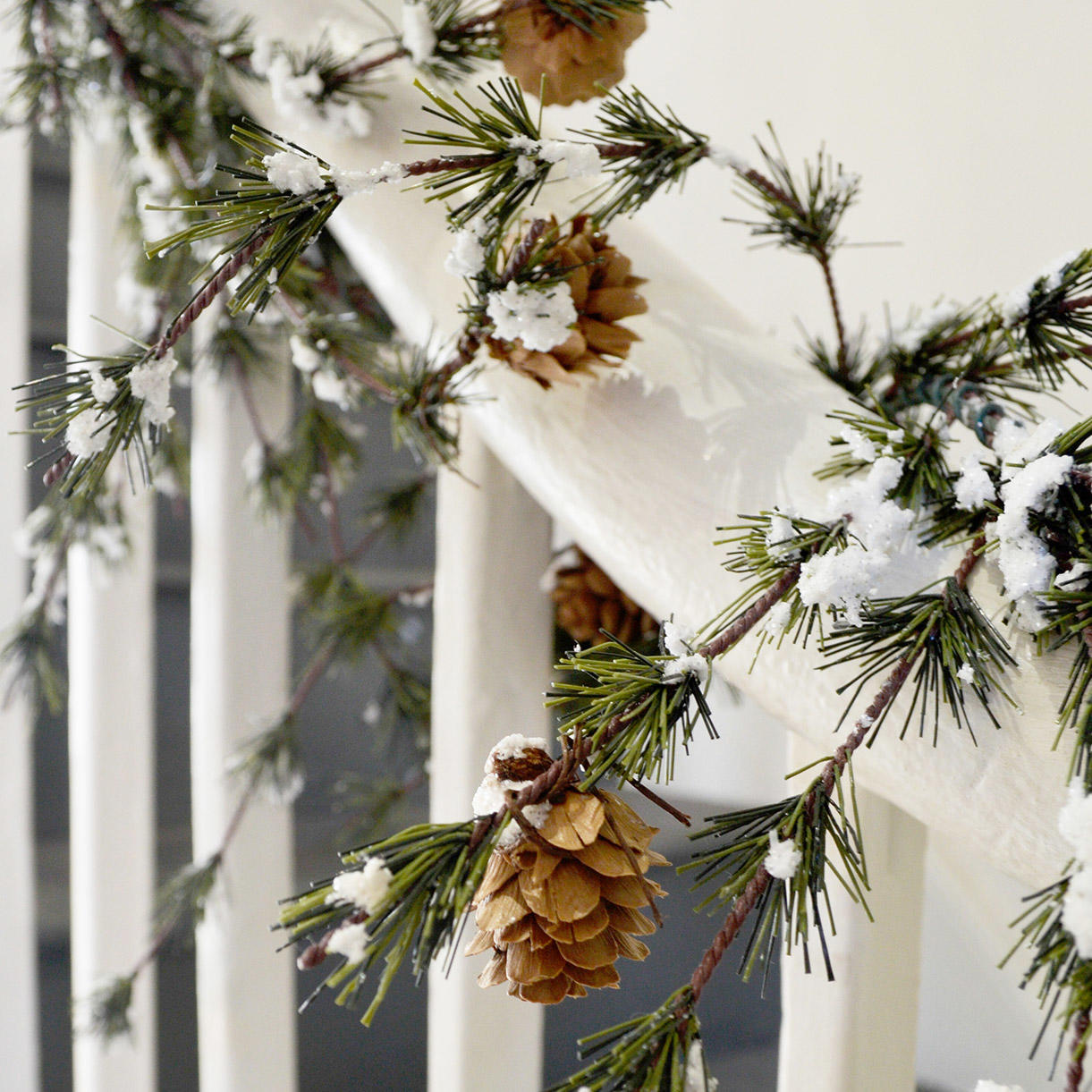 This beautiful garland is fresh out of a winter wonderland, with its snow dusted pinecones and needles.
