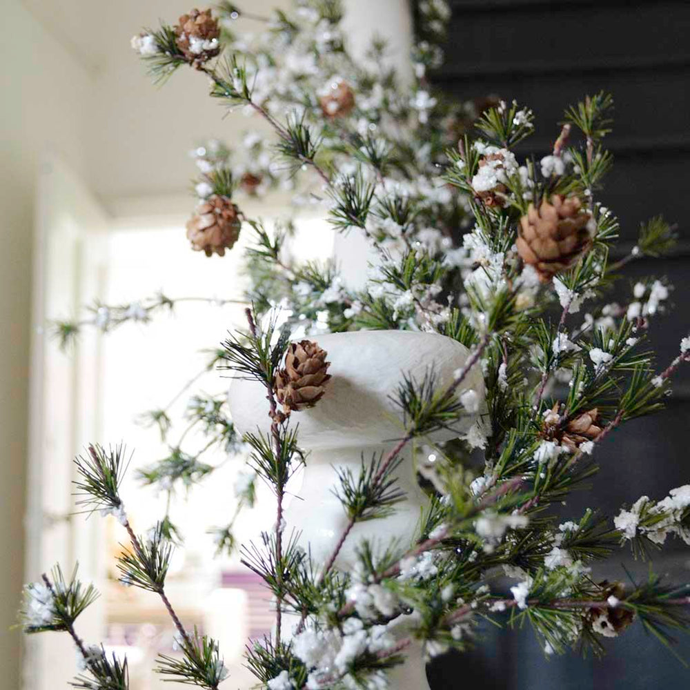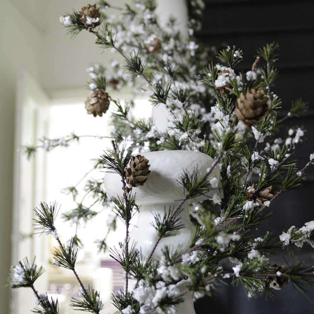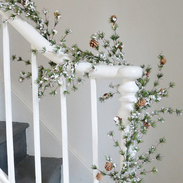 Snow dipped spruce garland, perfect to give your mantle-piece a little touch of Christmas.