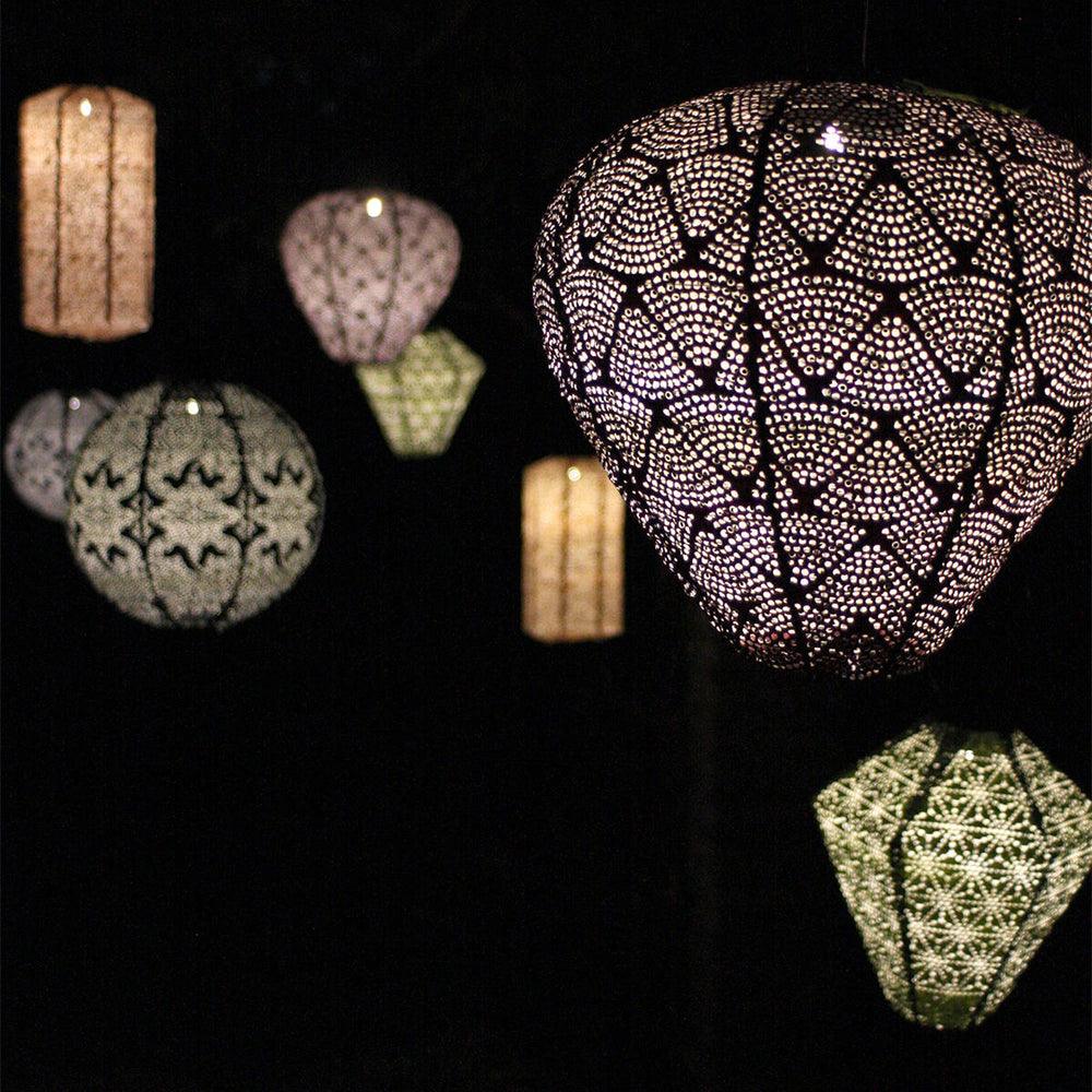 The lantern takes its influence from traditional Eastern paper lanterns.