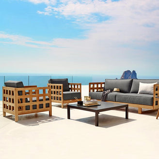 The delightful Square outdoor lounge by Cane-line offers deep, contemporary outdoor seating with the luxury of natural teak and the practicality of all weather quick drying cushions.