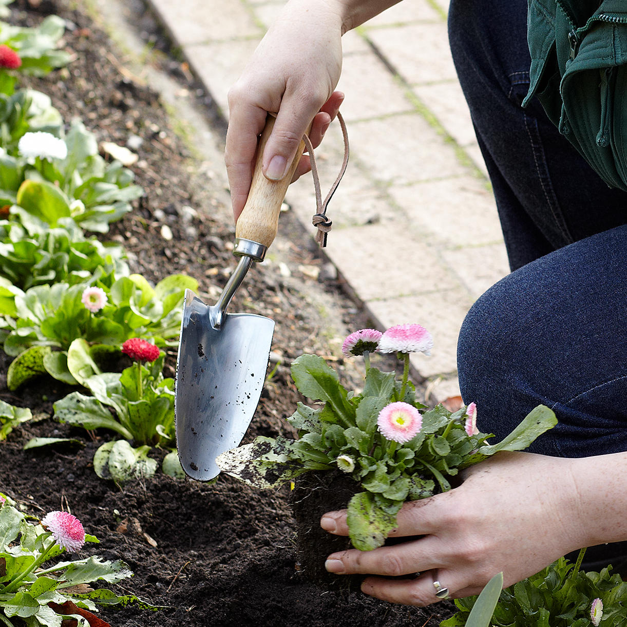 The handle is made from sustainably grown hardwood to give long life. The choice of this natural material means the handle will gradually mould to the shape of your hand over time. The stainless steel head gives excellent resistance against rust and good clean movement through the soil, which avoids clogging. The deep shape of the trowel means it can carry larger loads of soil or compost.