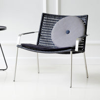 The chair is made of stainless steel and with black or natural yarn, in a choice of flat or round weave.