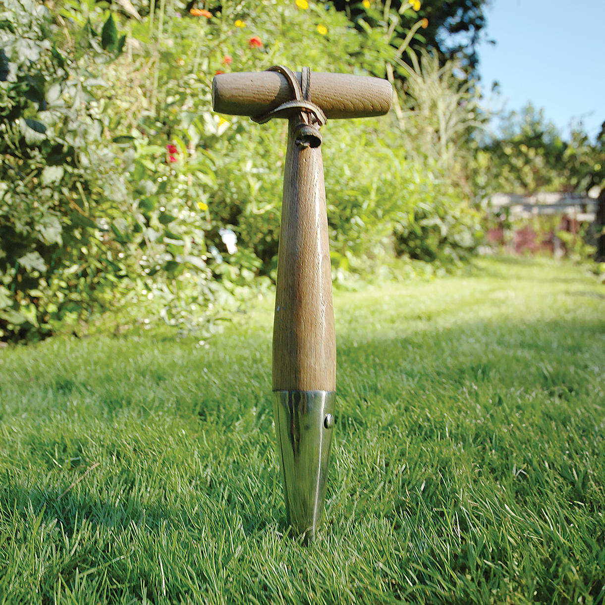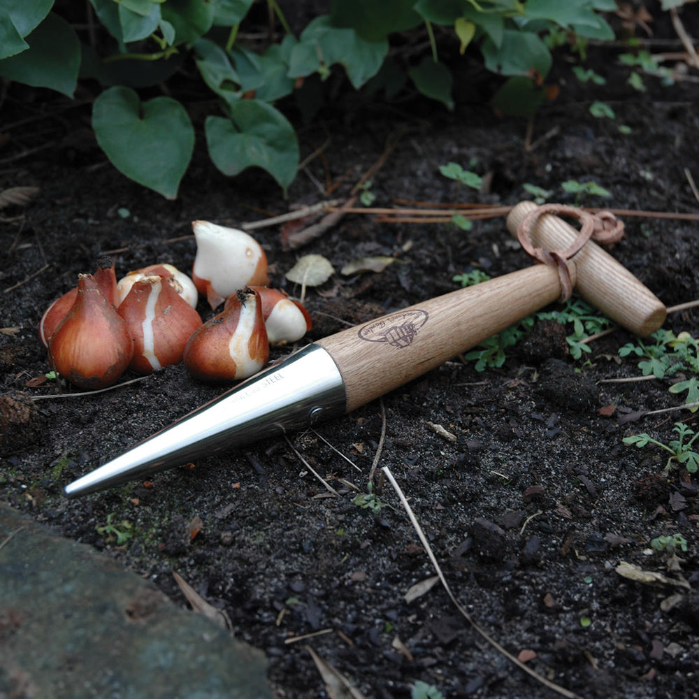 With a sturdy wooden handle and stainless steel dibber this handy garden tool makes bulbs planting a thing of joy.