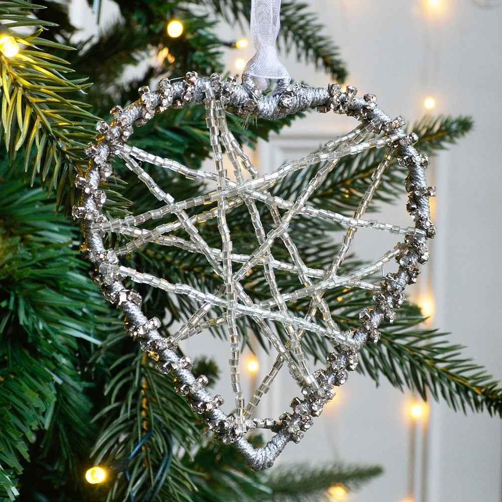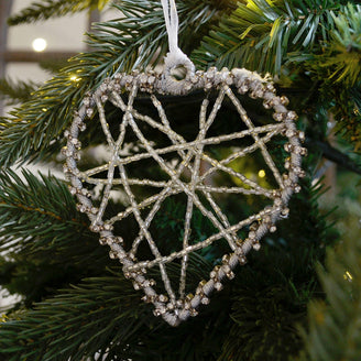 Make your Christmas tree extra pretty with these lovely hanging hearts, decorated with silver bugle beads, and gold and silver bead detailing.