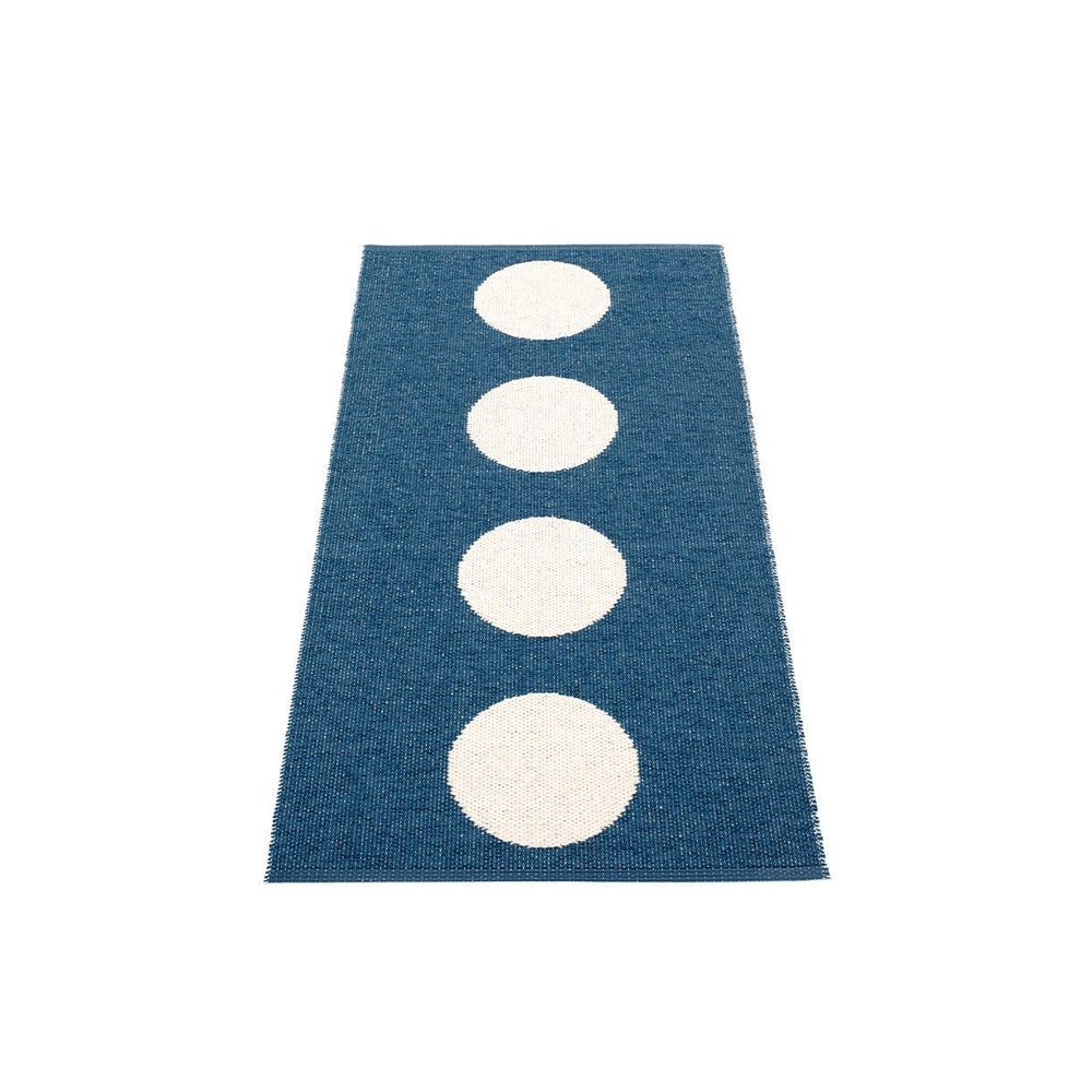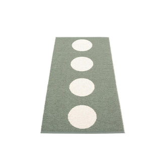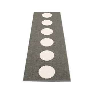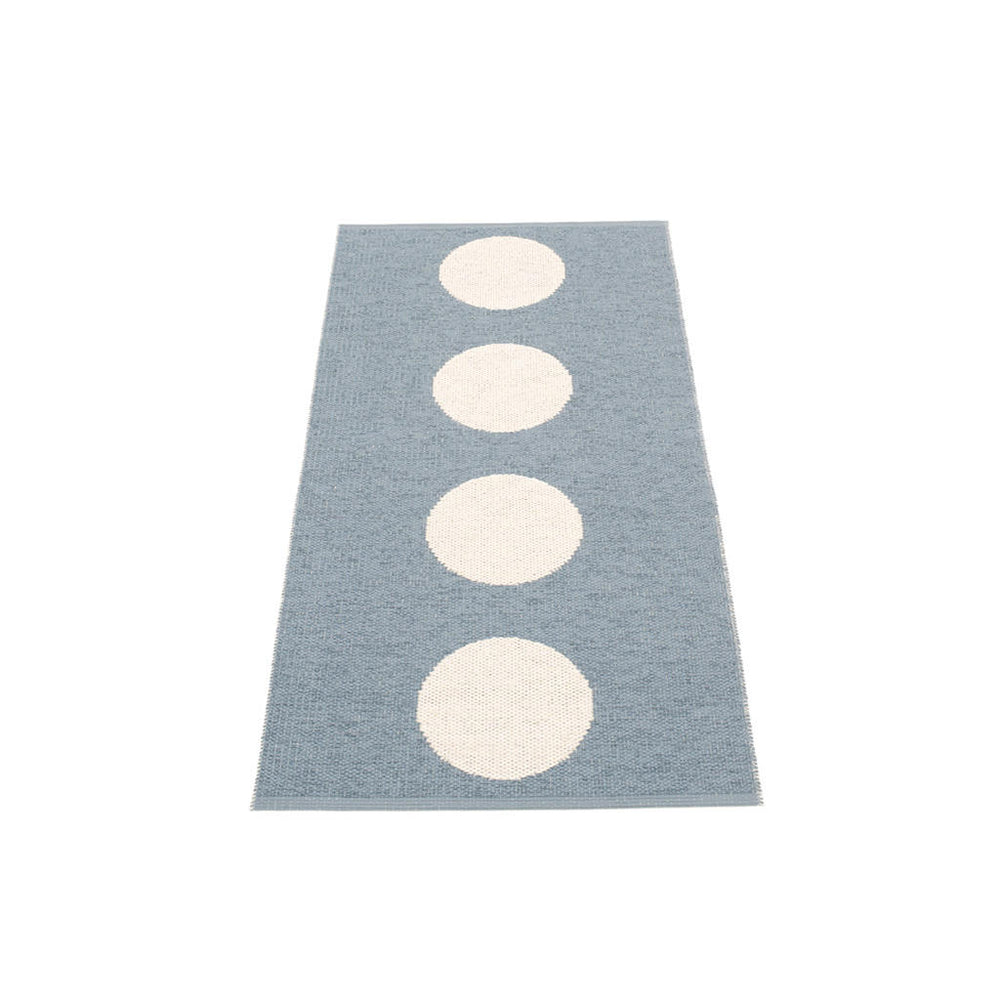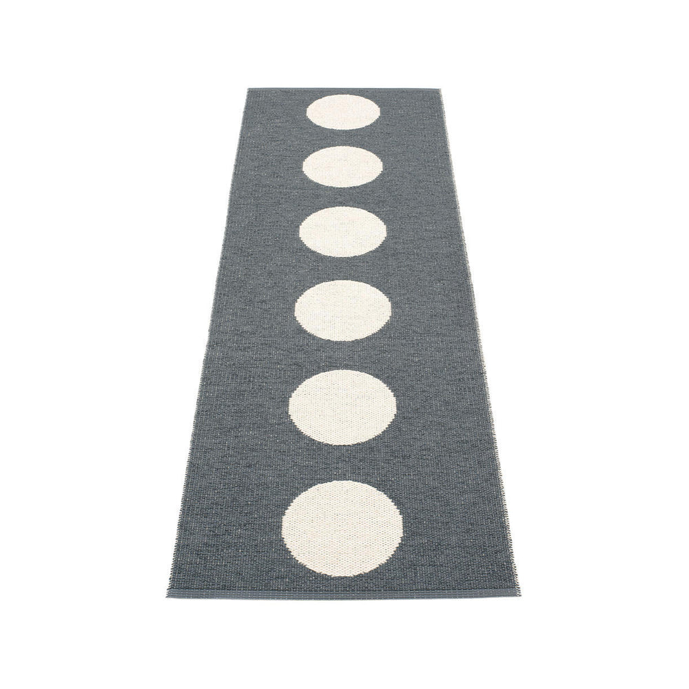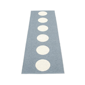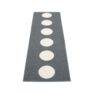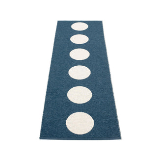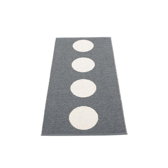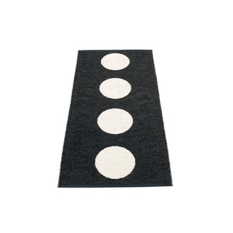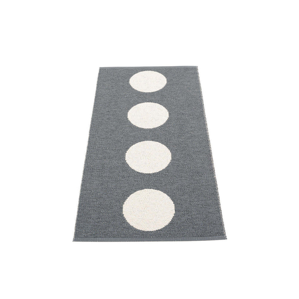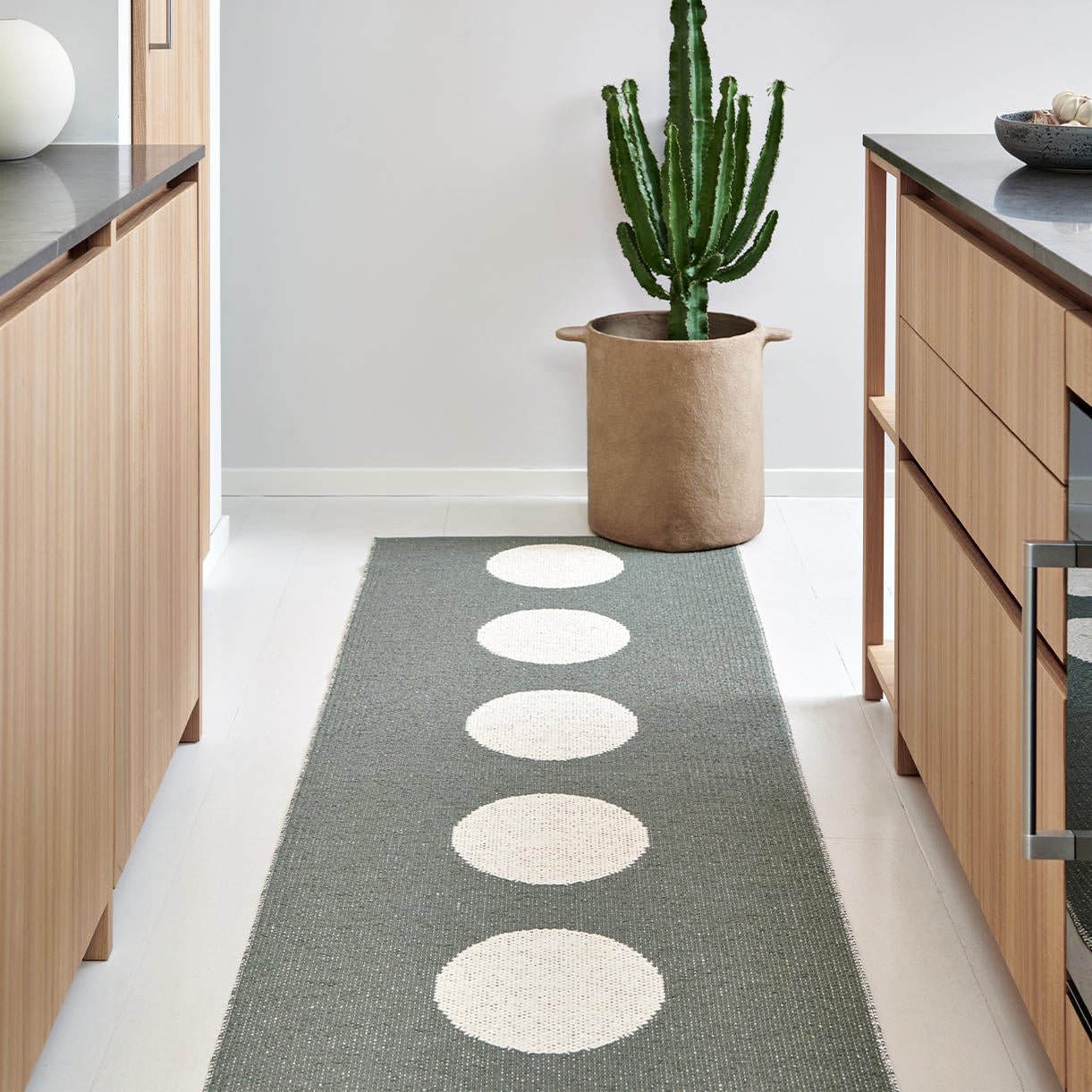Made in Dalarna, Sweden. Woven on a traditional loom using wooden shuttles. Very practical and easy-to-care-for rug in Swedish manufactured PVC. Welded ribbon for strength and durability, with embossed Pappelina logo, at both edges.